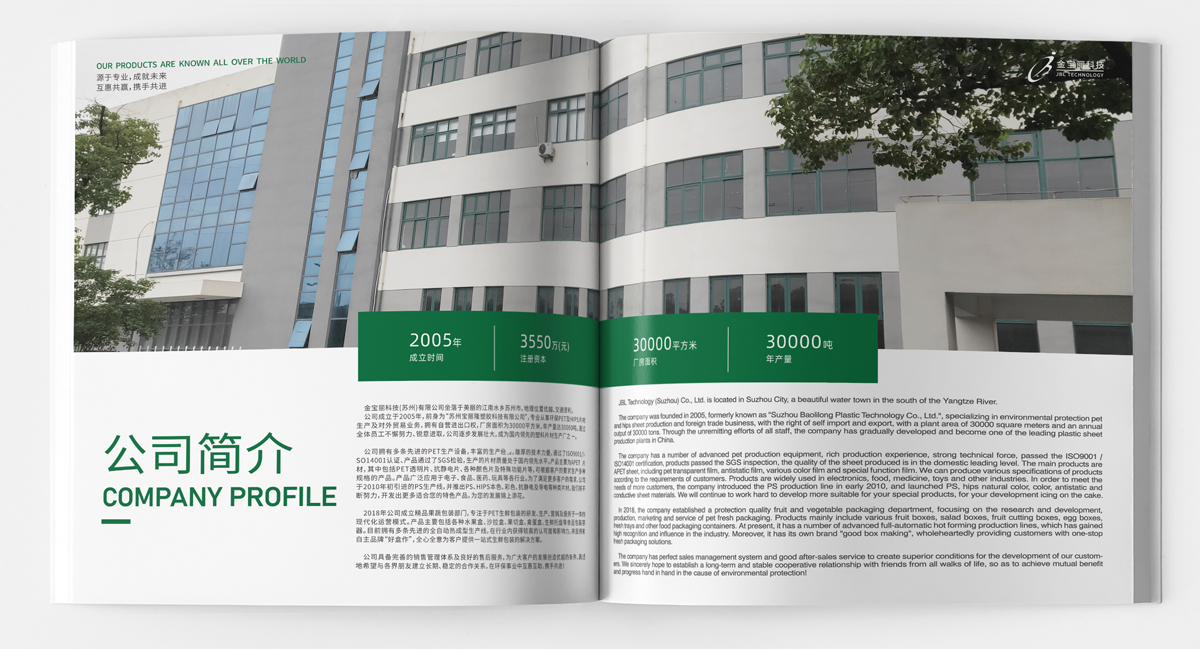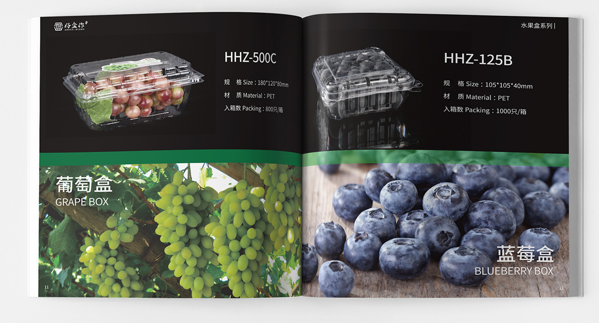 品牌介紹:蘇州金寶麗包裝部門,專注于PET生鮮包裝的研發、生產、營銷于一體的現代化運營模式,產品主要包括各種水果盒、沙拉盒、果切盒、禽蛋盒、生鮮托盤等視頻包裝容器,自主品牌“好盒作”全新全意為客戶提供一站式生鮮包裝的解決方案,畫冊設計風格整體簡潔大氣、黑色底更好突出透明盒的品質。