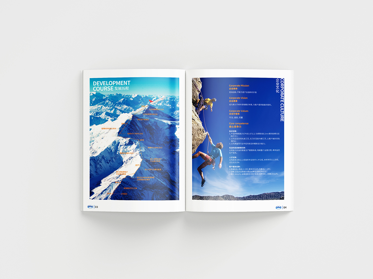 作品的主色調(diào)選用科技藍(lán),給人以涼爽又不失穩(wěn)重的感覺,并且在視覺上有收縮的作用,通過顏色的搭配從封面到宣傳畫冊(cè)內(nèi)頁(yè)從一而終的貫徹,這就可以更加表現(xiàn)出宣傳冊(cè)的設(shè)計(jì)感以及現(xiàn)代感,充有助于向消費(fèi)者傳達(dá)企業(yè)良好形象,增強(qiáng)企業(yè)的識(shí)別性。