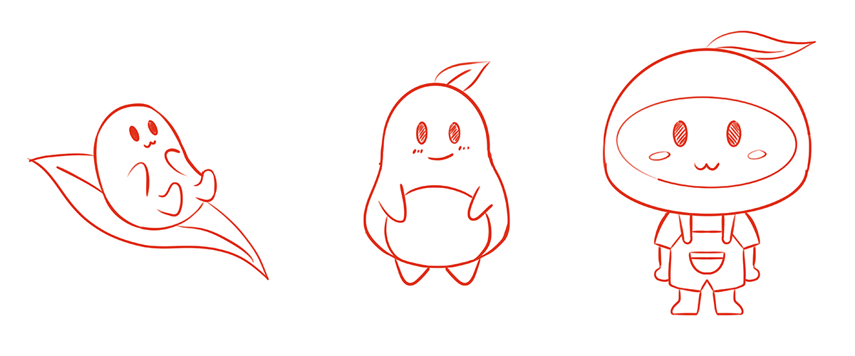根據(jù)小能豆品牌IP設(shè)計的行業(yè)特點(diǎn),我們?yōu)樾∧芏巩嬃丝ㄍㄈ宋镌O(shè)計草圖,客戶選擇了第二個和第三個草圖深化設(shè)計