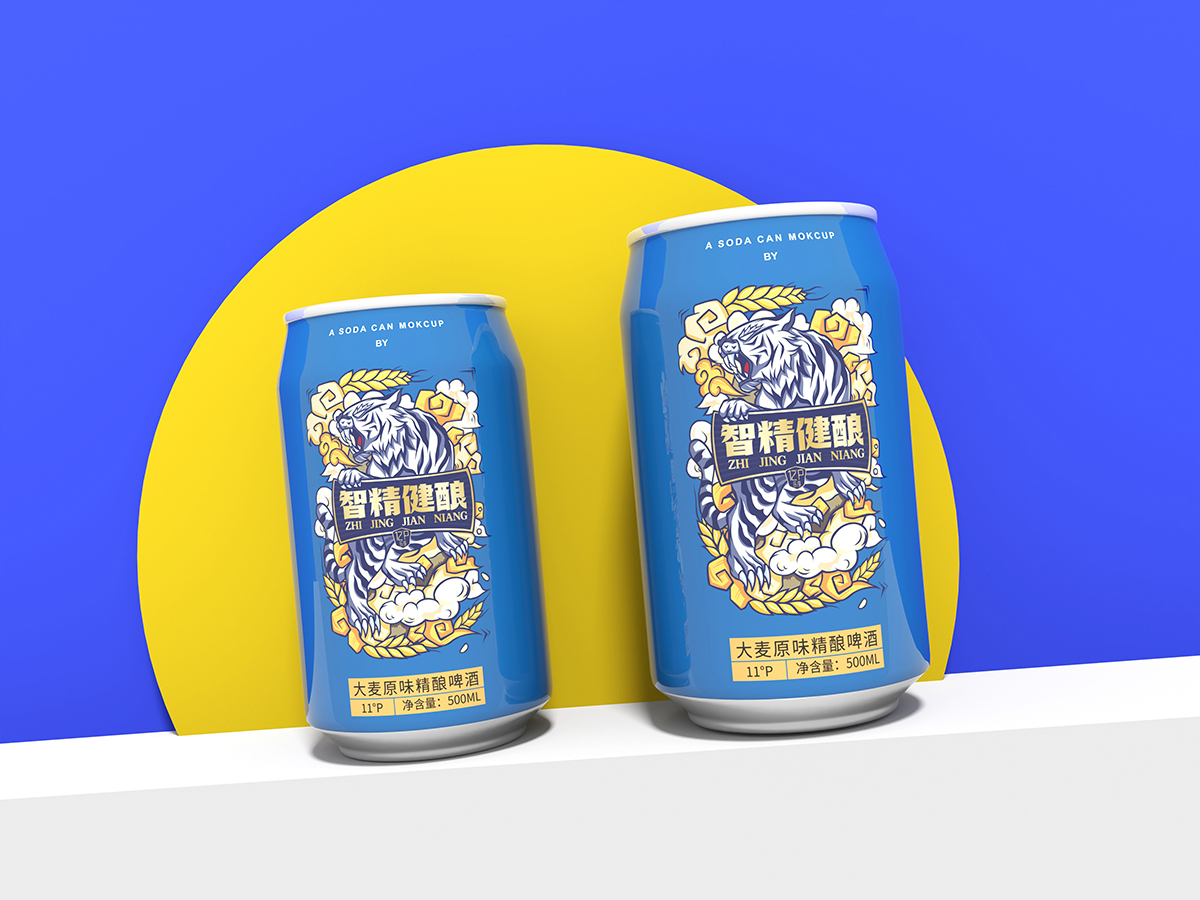 精釀啤酒虎圖騰包裝設(shè)計(jì):老虎是萬獸之王,他是力量和威嚴(yán)的象征,是原始圖騰代表吉祥和幸福,最原始、最鮮活就是智精健釀的品牌含義,以虎為主題,配合麥穗、祥云等元素點(diǎn)綴,繪制畫出。