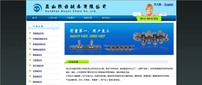 項目介紹:  昆山牧云鏈條有限公司地處昆山市開發區玉山鎮,是生產各種傳動、輸送鏈條的專業工廠,主要產品有A、B系列標準鏈條和各種非標準鏈條、鏈輪,以及按照客戶需求自行設計和制造各種特殊鏈條、鏈輪和輸送設備。