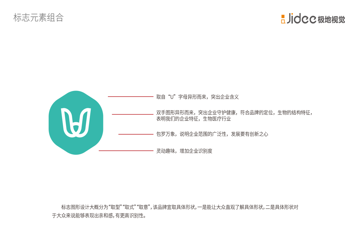 何健醫(yī)療logo 設(shè)計,取自“U”字母異形而來,突出企業(yè)含義