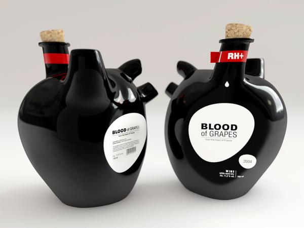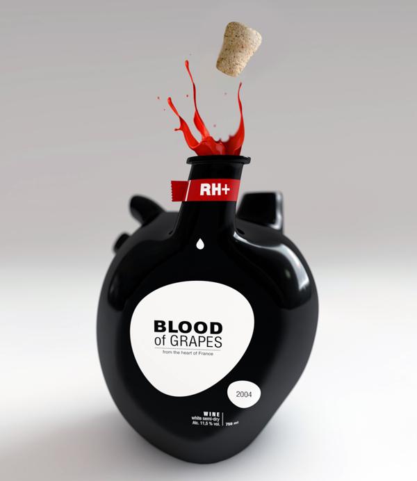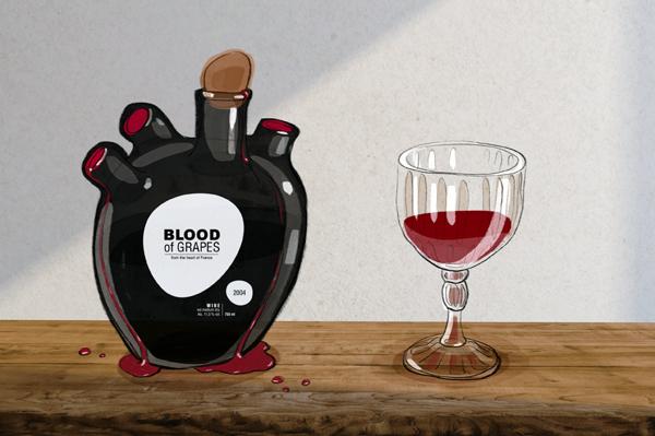 法國BLOOD of GRAPES品牌葡萄酒特色包裝設(shè)計(jì),葡萄酒是葡萄的血液,心臟是它的容器。口號“法國的心臟”支持整個設(shè)計(jì)概念。