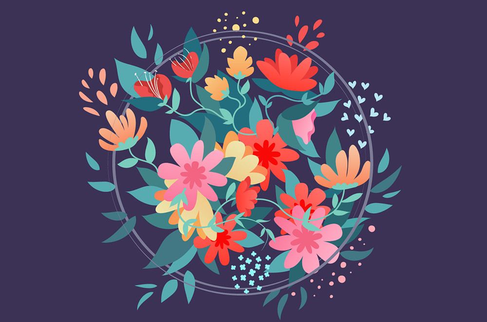 花束的布局中比較集中的部分我們已經完成了,當然這并不是全部,要讓花束看起來更為燦爛,還需要一些“外圍”細節。這也是增加一個圖案吸引力的方法。