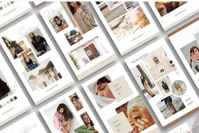 讓圖片的角度和間距變得不規(guī)則。有了不規(guī)則的留白,就能展現(xiàn)出真摯簡(jiǎn)樸的風(fēng)格與些許調(diào)皮的感覺(jué)。另外,矩形圖片加內(nèi)文的基礎(chǔ)排版方式,則能讓人感受到一種沉穩(wěn)的愉快氛圍。