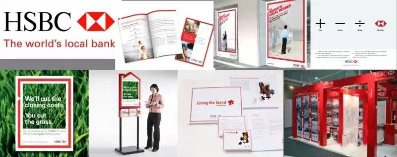 2005年后,匯豐采用了新的VI系統,加了一個顯眼的紅框,并以LOGO上的三角圖案破了這個框,讓它更有品牌特征。這個框框看似簡單,其實并不容易表現。從視覺呈現看到背后強大的管理體系,是尊重市場、尊重用戶、尊重設計的結果。看似簡單的視覺語言,其背后依然是可貴的堅持與到位的執行。