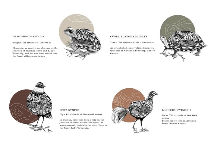 顛覆竹傳統(tǒng)形象,從臺(tái)灣南投竹山,發(fā)現(xiàn)竹節(jié)廢料,重新形塑及轉(zhuǎn)化其功用,透過(guò)地方竹生態(tài),依海拔區(qū)間,對(duì)應(yīng)竹生態(tài)底下保育物種,敘述人類自然共生平衡的價(jià)值,應(yīng)重視珍惜。