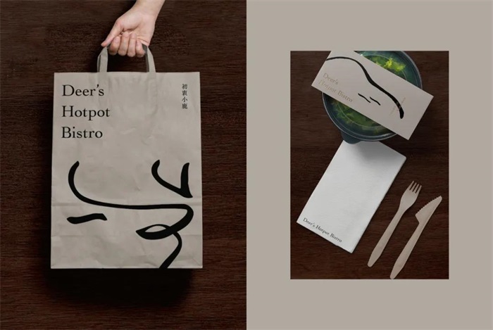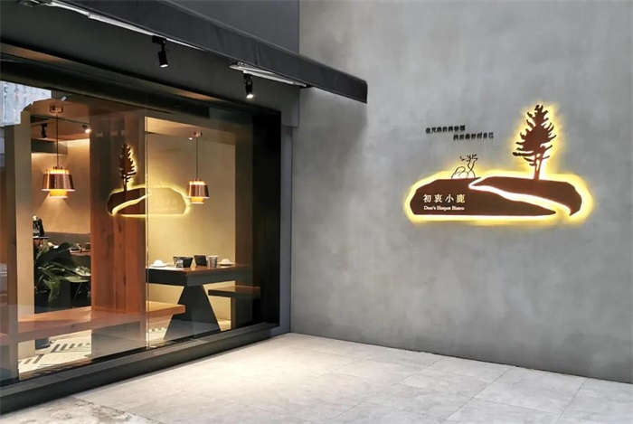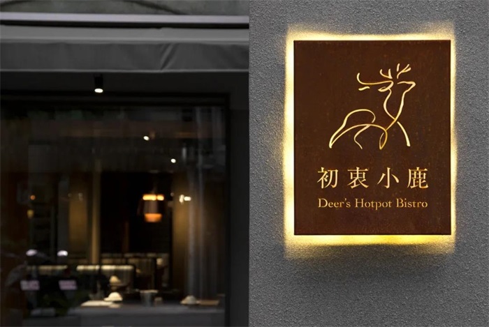 初衷小鹿是一間精品鍋物店,業(yè)者將法式料理的經(jīng)驗(yàn)帶到火鍋中,秉持對食物原味的追求以及對餐飲服務(wù)熱忱的初衷,細(xì)心講究到食材產(chǎn)地到料理與空間的每個(gè)環(huán)節(jié)中,相信靠著食物之間的對話,能讓平凡的食材造就出其不平凡而令人驚艷的新風(fēng)味。設(shè)計(jì)上以藝術(shù)性的線條繪制小鹿的形象,呈現(xiàn)純粹的生命力,在室內(nèi)材質(zhì)與印刷物上采用大量的自然元素:寬敞的花園、真皮制菜單、柚木菜盤、鑄鐵招牌、原木桌面與桌牌,以大量原木、石材、皮革、金屬呼應(yīng)品牌的核心價(jià)值,也希望傳遞更細(xì)膩的品牌溫度。相比一代店年輕的品牌個(gè)性,經(jīng)過兩年多的洗禮,蛻變?yōu)楦墒斓男÷埂?