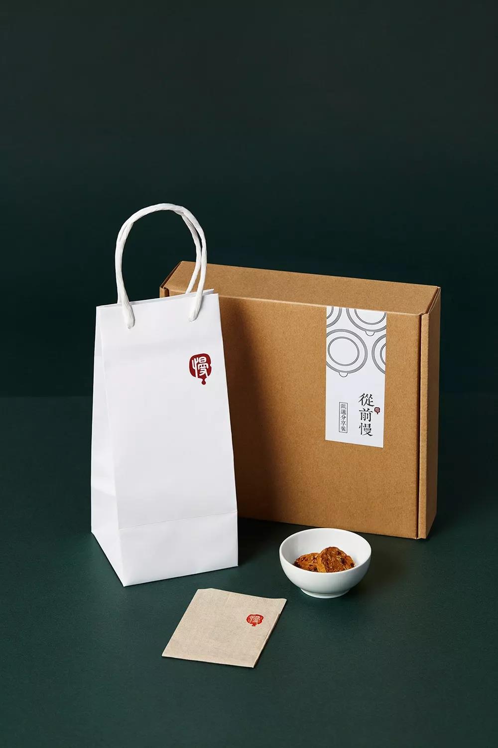 “從前慢”是一家滋補甜品店,主打傳統銀耳羹,LOGO選用極具文藝氣息的康熙字典體,旁邊一個小小的纂體“慢”字印章,輔助圖形也在“慢”字上進行延展。整套VI設計以黑白為主色調,無多余綴飾,風格簡潔婉約,為了配合文藝國風的調性,除菜單外的文字全部采用豎版排版。