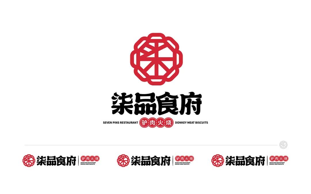 驢肉火燒是華北地區(qū)極為流行的傳統(tǒng)小吃,華北地區(qū)的大街小巷隨處可見驢肉火燒的店鋪,驢肉也蘊(yùn)含著極高的營(yíng)養(yǎng)價(jià)值。柒品食府的LOGO圖形提取了花窗的元素,結(jié)合名稱的首字“柒”抽象而成,是比較古典的感覺(jué),注重打造品牌的符號(hào)文化。而文字的筆劃結(jié)束處的上揚(yáng)或下鉤,令字形呈現(xiàn)出比較輕俏的感覺(jué),圖形與文字,更像是傳統(tǒng)與現(xiàn)代的撞擊。LOGO有著不同的組合樣式,橫版組合樣式重在突出符號(hào)和名稱,而豎版組合樣式則側(cè)重展現(xiàn)名稱和品類,圖形符號(hào)作為點(diǎn)綴,使LOGO的整體呈現(xiàn)更加和諧。