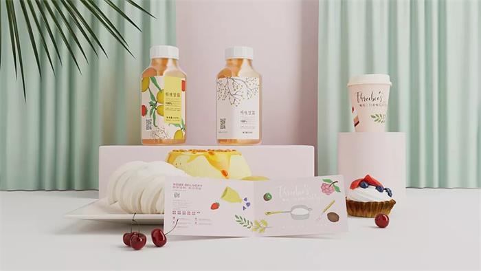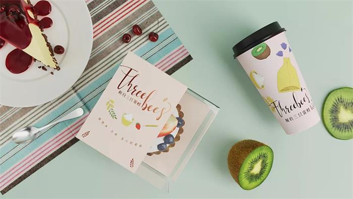 三只蜜蜂主營糕點甜品,品牌包裝設(shè)計以插畫風為主,復(fù)古的英文手寫字體略帶異域風情。插畫應(yīng)用在包裝上,清新甜美。