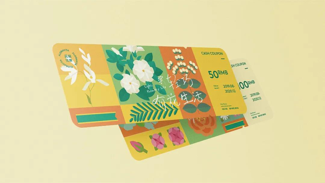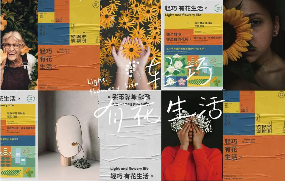 作為鮮花品牌以“鮮花”作為主視覺。但為了傳遞輕巧有花生活,融入幾何圖形及色塊,中和花的復雜,帶來更時尚簡潔的感受。最終品牌視覺運用到物料設計,豐富的物料傳遞品牌理念,讓消費者更容易了解并喜歡。