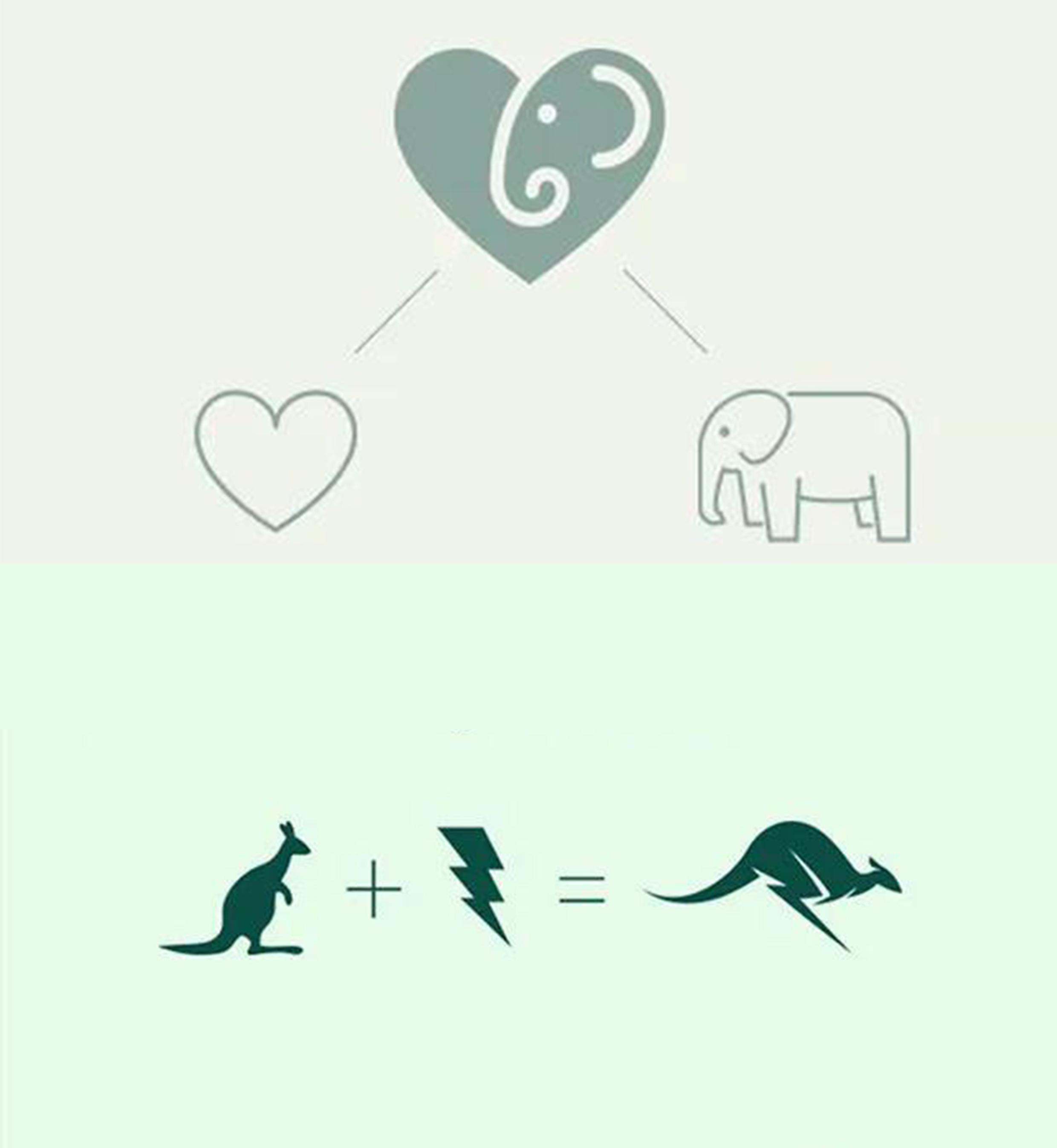 三者元素各取一部分組成一個(gè)logo,也可以是兩者元素各取一部分組成整體。