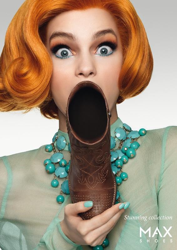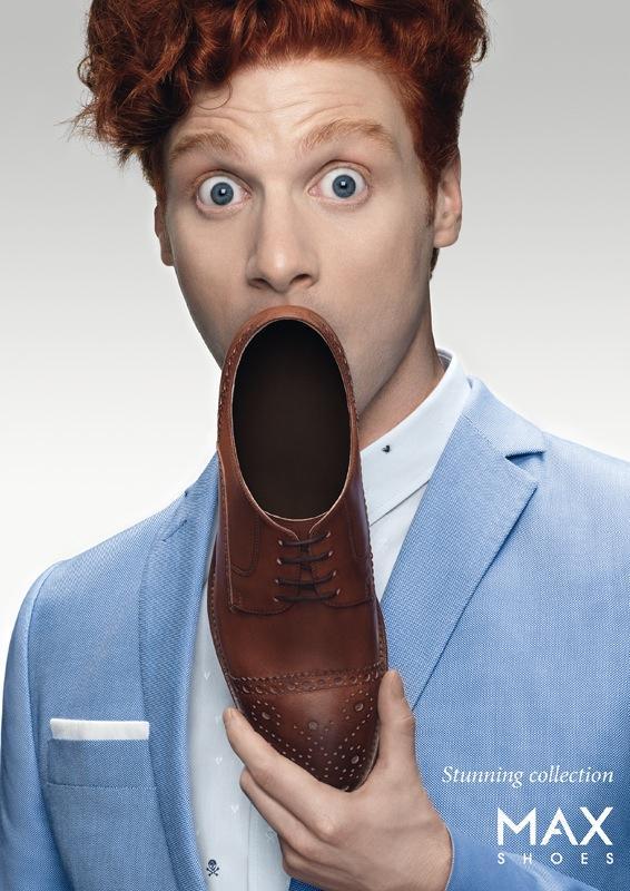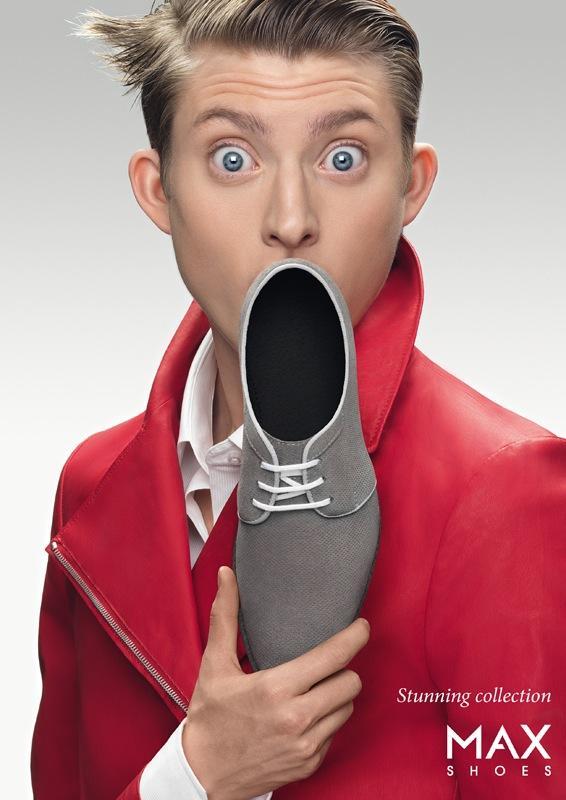 巧妙利用鞋的空洞充當人驚訝時張大的“嘴巴”,可見去MAX買鞋實在讓人驚喜連連。就平面表現(xiàn)來說,女人那一張比男人的兩張更顯張力。