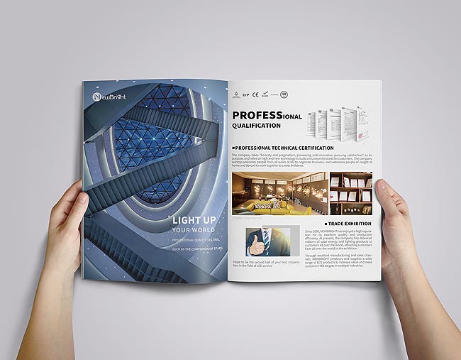 照明產(chǎn)品宣傳冊(cè)在進(jìn)入介紹品牌鏈上的產(chǎn)品前,對(duì)企業(yè)概況的描述是必不可少的,畢竟并不是每一位讀者都是你的老客戶,對(duì)你公司的充分了解。對(duì)照明公司的簡(jiǎn)介文案刻畫上也要突出公司實(shí)力為主,并且適當(dāng)?shù)娜谌肫髽I(yè)文化,增進(jìn)照明銷售代理商對(duì)企業(yè)的信心。宣傳在進(jìn)入照明產(chǎn)品設(shè)計(jì)排版的時(shí)候,需要簡(jiǎn)約處理,清晰的識(shí)別產(chǎn)品的參數(shù)型號(hào)以及各項(xiàng)指標(biāo),方便快速的索引目錄是成功的關(guān)鍵。