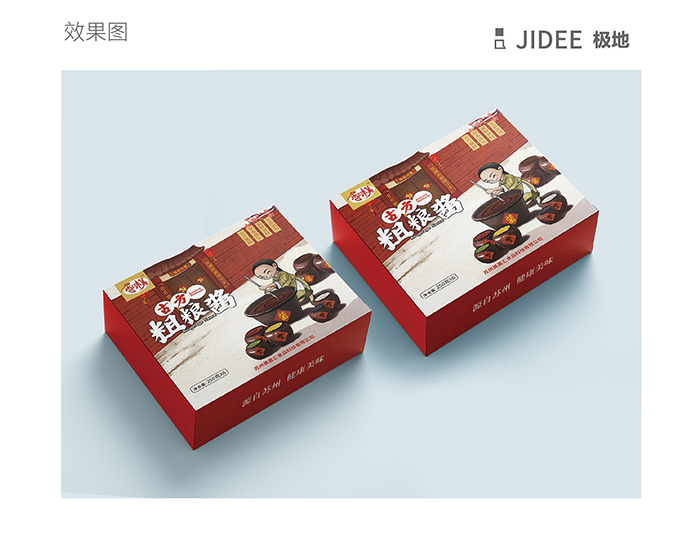 古方粗糧醬快消品包裝設計,原創手繪插畫設計,古方秘制,草本成本,新鮮食材,無添加劑。
