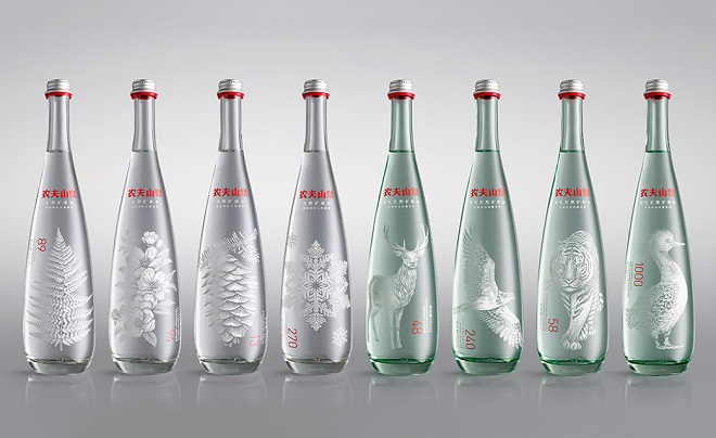 比如橫掃2015年眾多獎(jiǎng)項(xiàng)、斬獲包裝設(shè)計(jì)類最高獎(jiǎng)——FAB最佳作品獎(jiǎng)的高端水系列瓶裝設(shè)計(jì)。瓶身的設(shè)計(jì)充滿傳統(tǒng)中國藝術(shù)色彩,選取了長白山的典型天氣和植物以及長白山四種典型的動(dòng)物,體現(xiàn)了其水源地的自然生態(tài)。