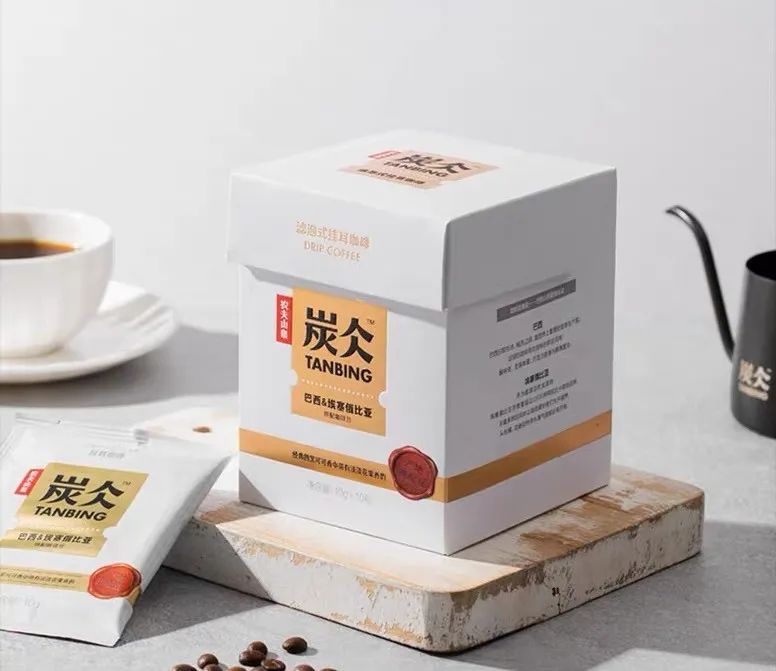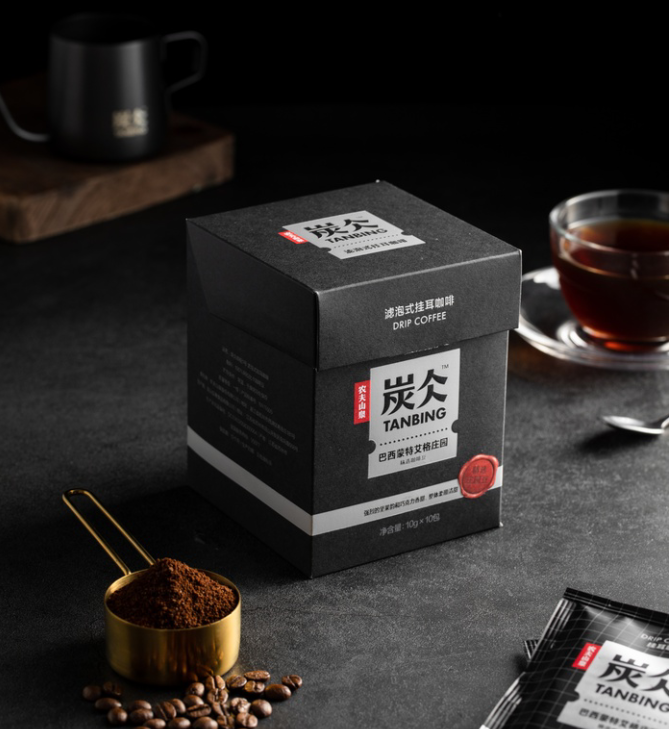 還有炭仌(bing)掛耳咖啡包裝設(shè)計(jì)也非常的高大上,以打造“0.01平方米咖啡館”為設(shè)計(jì)理念,分別設(shè)有小黑盒、小白盒和小棕盒三款包裝,類似護(hù)膚品的取名以引起消費(fèi)者的新鮮感。