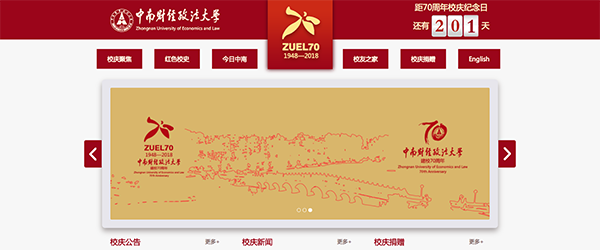 中南財(cái)經(jīng)政法大學(xué)是中華人民共和國(guó)教育部直屬的一所以經(jīng)濟(jì)學(xué)、法學(xué)、管理學(xué)為主干,兼有哲學(xué)、文學(xué)、史學(xué)、理學(xué)、工學(xué)、藝術(shù)學(xué)等九大學(xué)科門(mén)類(lèi)的普通高等學(xué)校,是國(guó)家“211工程”高校和“985工程優(yōu)勢(shì)學(xué)科創(chuàng)新平臺(tái)”項(xiàng)目重點(diǎn)建設(shè)高校,入選世界一流大學(xué)和一流學(xué)科(簡(jiǎn)稱(chēng)“雙一流”)建設(shè)高校及建設(shè)學(xué)科名單。學(xué)校現(xiàn)有兩個(gè)校區(qū),南湖校區(qū)位于風(fēng)景秀麗的南湖水畔,首義校區(qū)位于歷史悠久的黃鶴樓下。時(shí)光的流轉(zhuǎn)中,中南財(cái)經(jīng)政法大學(xué)將于2018年迎來(lái)她的70周年華誕。極地視覺(jué)設(shè)計(jì)形象升級(jí)