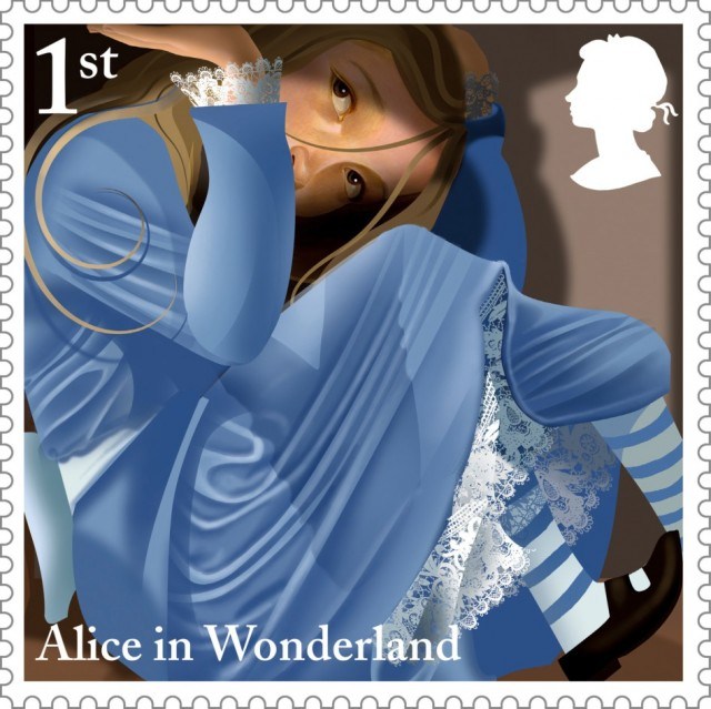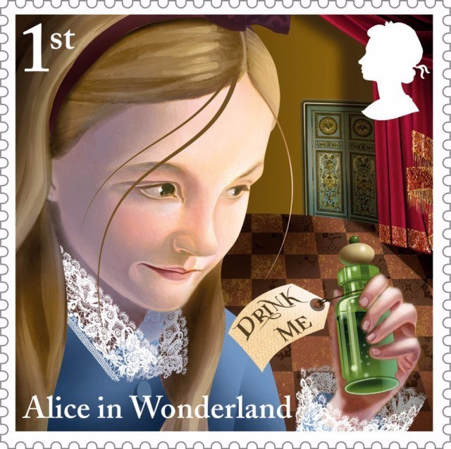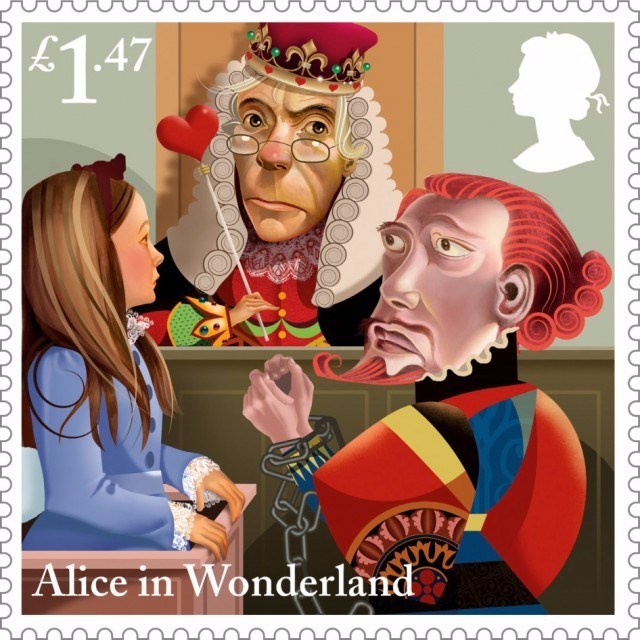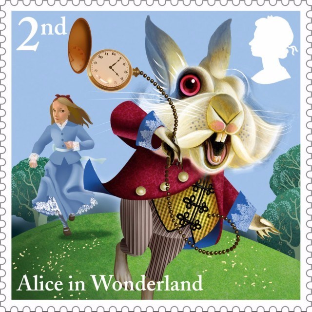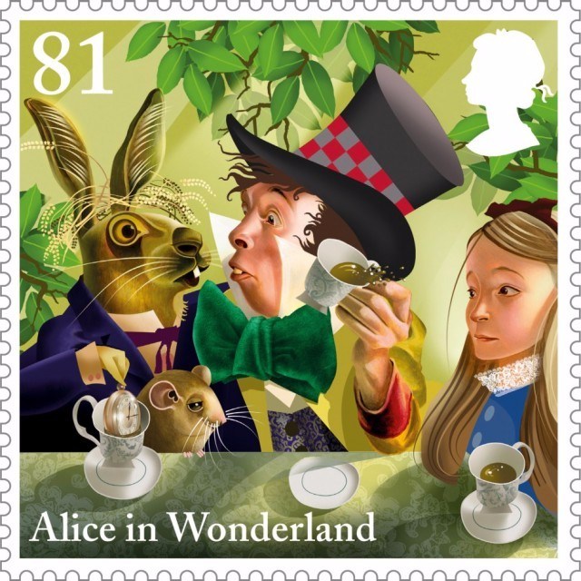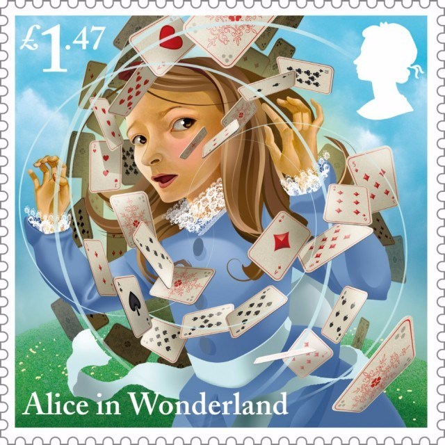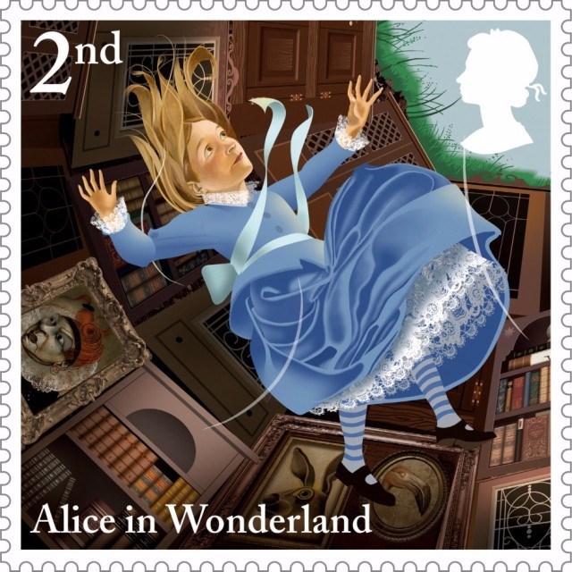 為慶祝英國作家劉易斯·卡羅爾(Lewis Caroll)的童話出版150周年,英國皇家郵政與著名插畫家Grahame Baker-Smith合作,圍繞著《愛麗絲夢游仙境》中的主要角色(如愛麗絲、白兔先生等)和經典場景,繪制了10幅郵票。蘇州插畫設計