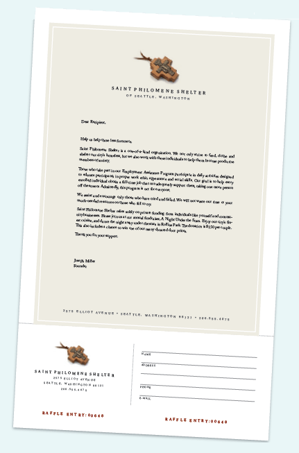 圣菲洛米彌收容所是一個為無家可歸的人服務的慈善機構,它會定期通過舉辦一些活動來籌集善款。我們已經為該機構設計了兩用式的宣傳單張,該單張傳達了該機構的信譽及權威,同時,在該單張下方有一張可撕式的回復卡片(已經在卡片與上方內容的分界地方預先打了排孔以方便撕下)。我們是如何設計的? |