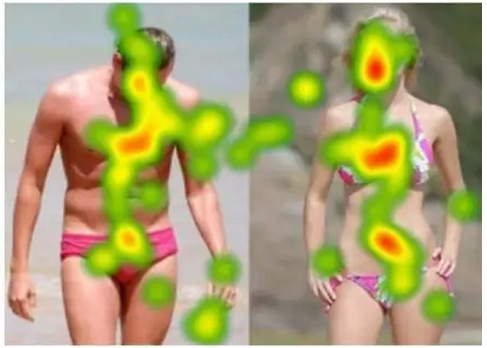 女人會(huì)關(guān)注人體臉部和軀干(左圖)。男人會(huì)更多關(guān)注旁邊的雜物(右圖)。
