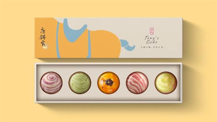 于2002年創(chuàng)立的唐餅家中式糕點(diǎn)品牌,這次的包裝形象升級(jí)以簡(jiǎn)潔的設(shè)計(jì)手法和國潮風(fēng)格,結(jié)合唐朝代表性的宮廷或官家元素,演繹了全新的唐朝韻味。首先包裝以唐朝畫作重現(xiàn)精致唐風(fēng),帝后組合作為品牌核心形象,結(jié)合唐朝文化藝術(shù)中的三彩馬、三彩駱駝及唐朝經(jīng)典建筑設(shè)計(jì)。另外通過扁平化色彩,抽象線條的畫面勾勒,巧妙展示了產(chǎn)品特有的外觀形象。整體波普化的呈現(xiàn)形式,契合品牌調(diào)性的同時(shí),系列的視覺效果增添了幾分美感。而另一個(gè)版本的獨(dú)立包裝,莫蘭迪色調(diào)背景下以抽象化呈現(xiàn)了食品本身的外觀,激發(fā)消費(fèi)者的味覺聯(lián)想。