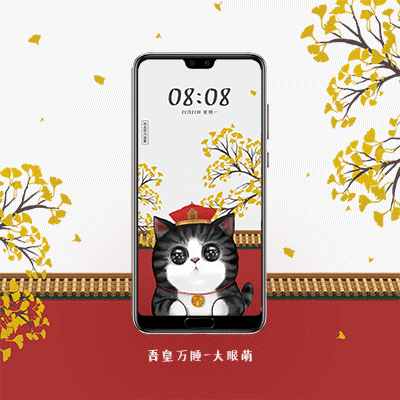 吾皇主題設(shè)計出來后,對于不同的手機用戶又如何定制化設(shè)計? 譬如,對于Nova4手機用戶,華為主題做了一整套的定制設(shè)計,例如 《小魚干》基于“極點屏”的手機特色,在畫面上加入小魚簍、魚眼睛等創(chuàng)意設(shè)計,成為點睛之筆,賺足了粉絲的眼球與好評。