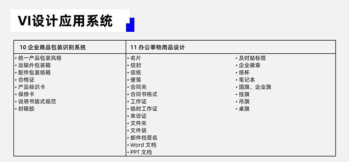 那么,完整的vi設計項目包含哪些內容呢?下面是煥識品牌多年實戰收集最完整的vi設計清單: